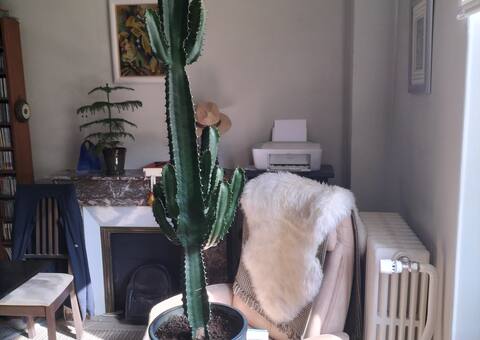 Cherche maison accueillante pour Euphorbe candélabre de 5 ans mesurant 97 cm en pot vernissé vert avec soucoupe de 22cm. Plante d'intérieur exposée à la lumière de l'Orient.