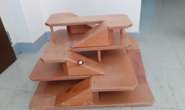 Garage en bois dans l état à repeindre, fonctionnel pour enfant